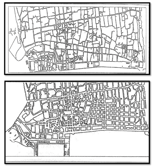 In early 1892, the municipality presented the new plan to the public. Engineers redesigned the streets according to a square and rectangular pattern, creating a grid system and six parallel streets running towards the harbour in the heart of the traditional city. Streets and iconic structures were named subsequently[108]. The fire sites were organized, and parcel division was carried out. The resulting parcels were distributed to their original owners based on the size of their properties and the modifications made to widen the streets[109]. Dead-end streets were removed, and 12-18 meter wide streets were opened in tcentrey center. The new urban planning law allowed for determining building heights based on the width of the streets, resulting in the decision to construct 3-4-story masonry buildings in the newly developed areas[110]. The area to be built according to the new plan was divided into 10 new building zones, each with a large number of newly numbered blocks. The new plan envisioned a systematic street layout, with buildings arranged to face the main street.[111] Reconstruction began with the completion of the plan. Schools and places of worship were primarily built in their original locations before the fire. The remaining area was utilized for the construction of new-style houses and businesses by the 1882 Building Law. In the newly developed area, the density of buildings remained low due to the presence of wide streets[112]. The largest urban redevelopment in Salonica took place after the fire, contributing to urban transformation in terms of widening streets, constructing new roads, and other aspects. When the city map based on the new plans was checked, it was observed that linear structures and square blocks were formed[113]. According to Gounaris, the number of houses in Salonica decreased from 12,000 to 8,300[114]. The destroyed neighbourhoods were redesigned, narrow streets were widened, infrastructure services were completed, and a new water network was established[115].
